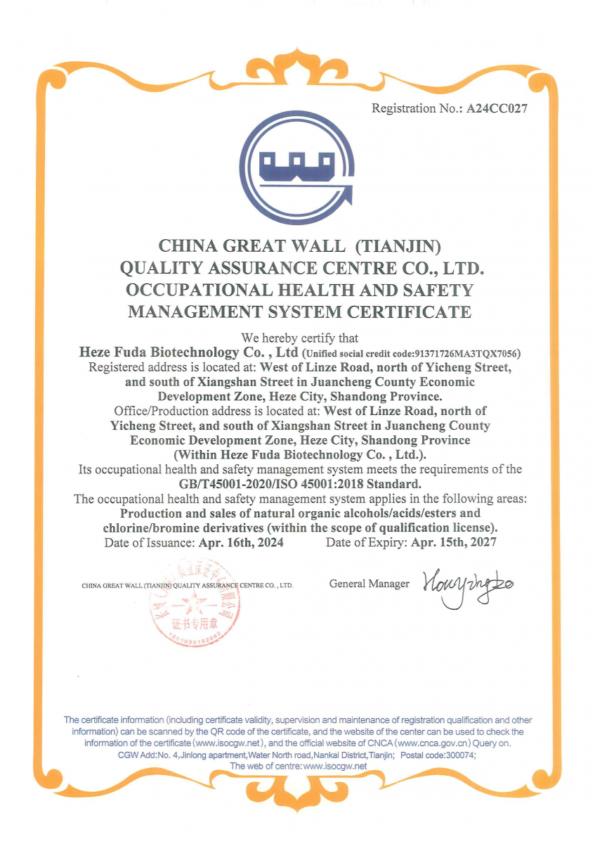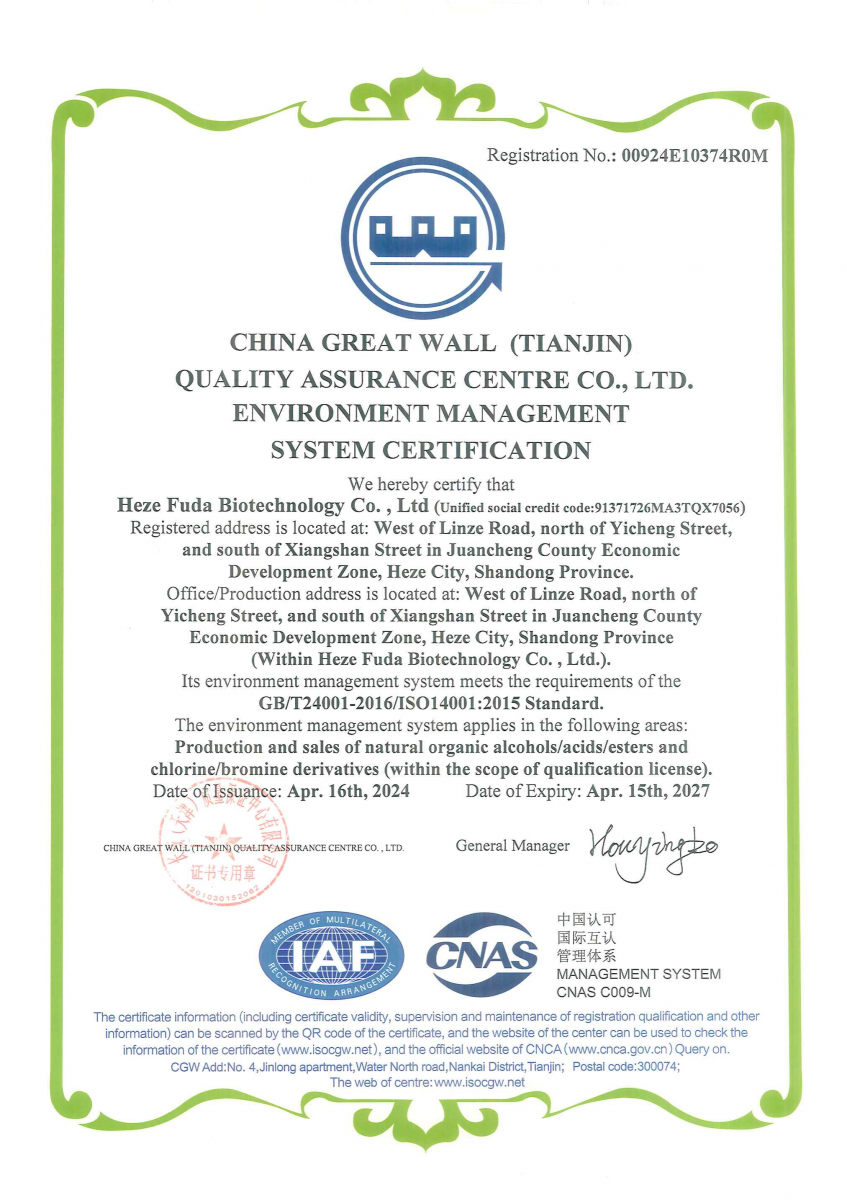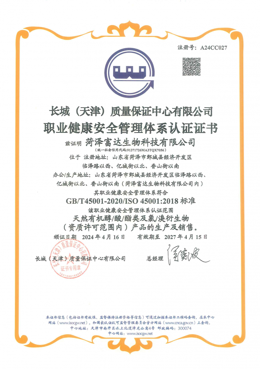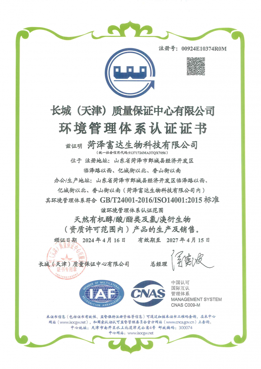 熱烈慶祝菏澤富達生物科技有限公司取得質量/環境/職業健康安全三標體系證書